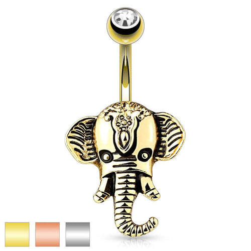 Surgical Steel Non Dangle Antique Elephant Head Belly Ring