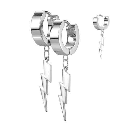 Pair of 316L Surgical Steel Lightning Bolt Dangle Hoop Earrings