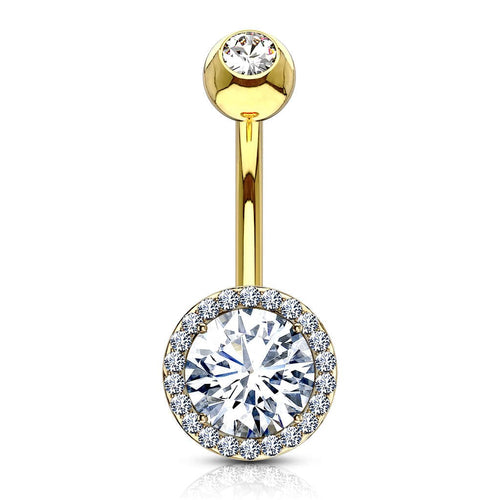 316L Surgical Steel Gold PVD Circle Pave White CZ Belly Ring