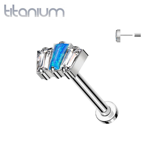 Implant Grade Titanium Triple Baguette White CZ Blue Opal Threadless Push In Labret