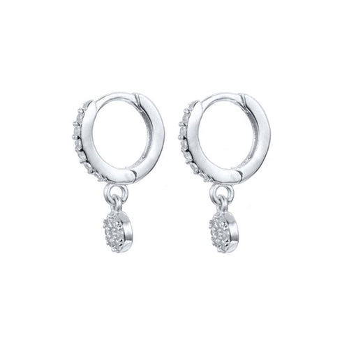 Pair Of 925 Sterling Silver White CZ Pave Circle Dangle Minimal Hoop Earrings