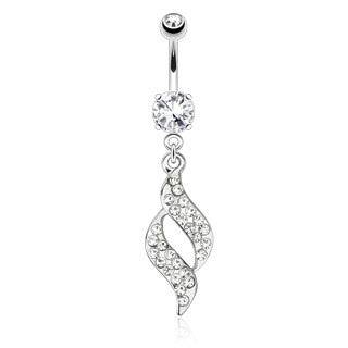 Surgical Steel Clear White Swirl Leaf Design Dangle Belly Button Navel Ring