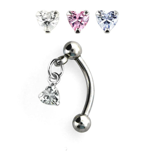 316L Surgical Steel Double Gem Heart CZ Belly Ring
