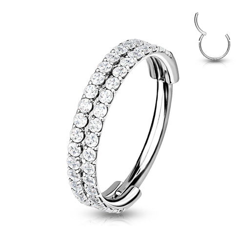 316L Surgical Steel Easy Hinged White CZ Pave Clicker Hoop