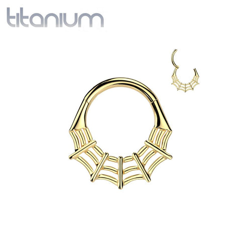 Implant Grade Titanium Gold PVD Spider Web Hinged Clicker Hoop