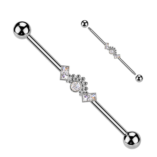 316L Surgical Steel316L Surgical Steel White CZ Baguette Beaded Industrial Barbell