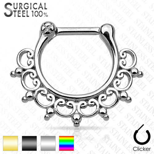 316L Surgical Steel Heart Filigree Screw On Ear Tunnels