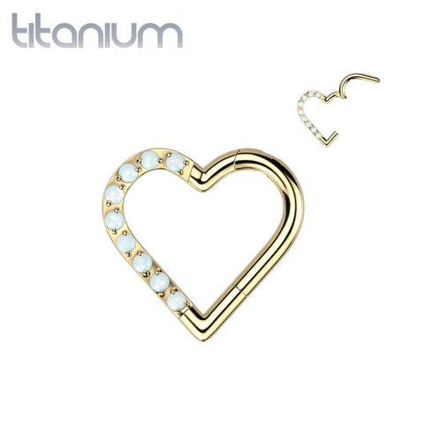 Implant Grade Titanium Gold PVD White Opal Heart Hinged Daith Clicker Hoop