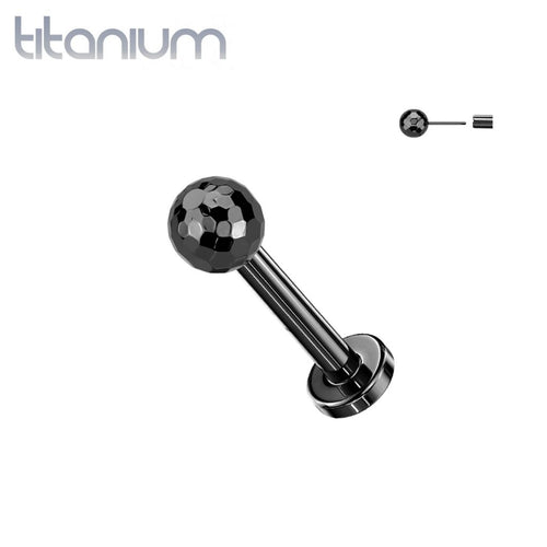 Implant Grade Titanium Black PVD Threadless Push In Glitter Ball Top Labret With Flat Back