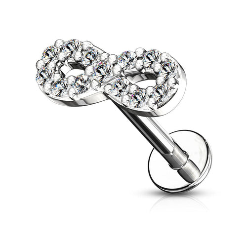 316L Infinity Symbol Internally Threaded CZ Flat Back Labret