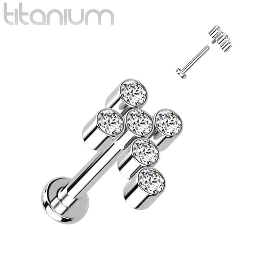 Implant Grade Titanium White CZ Internally Threaded Crescent Moon Labret Flat Back