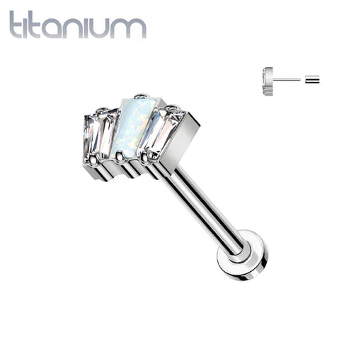 Implant Grade Titanium Triple Baguette White CZ Opal Threadless Push In Labret