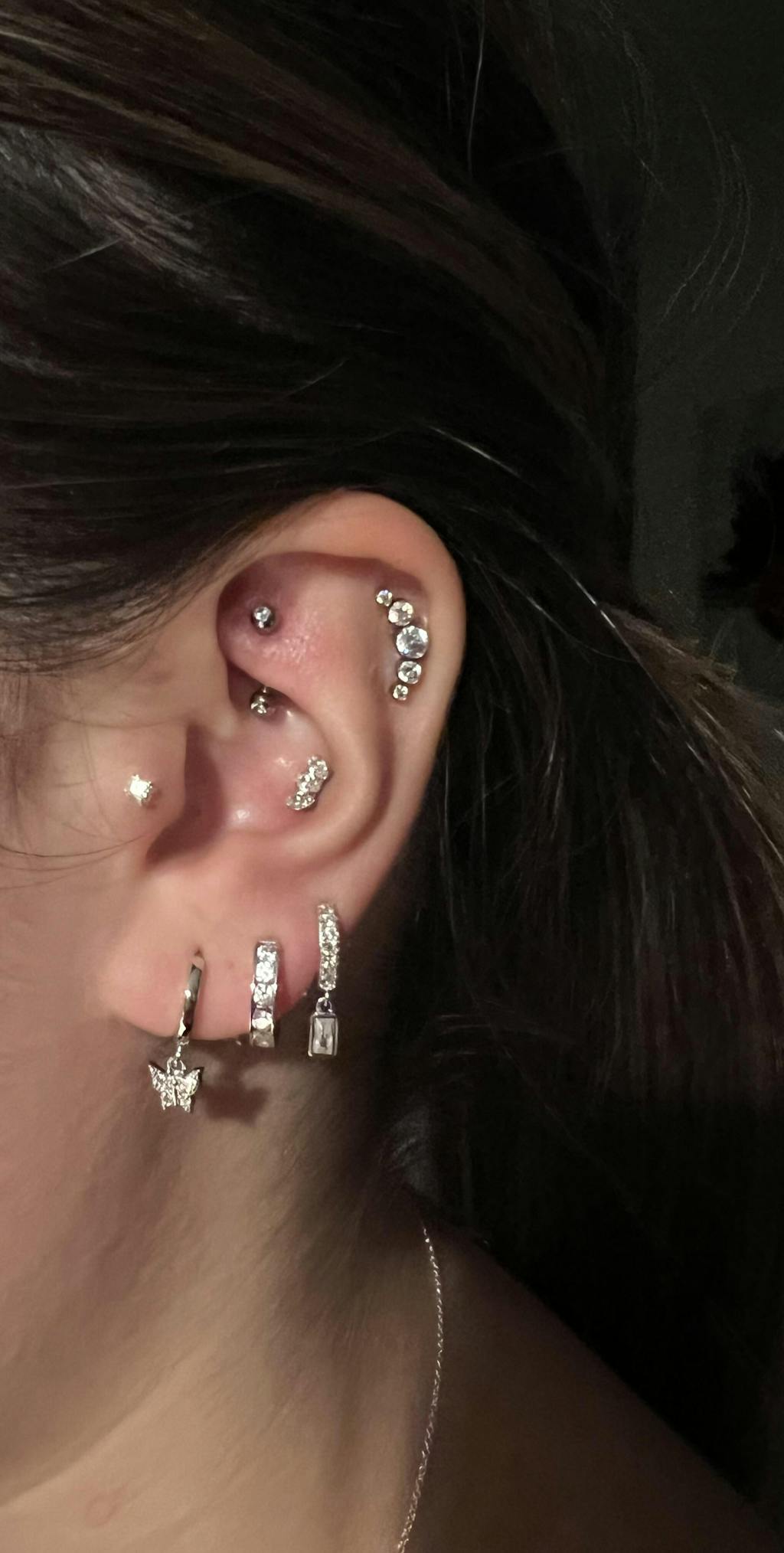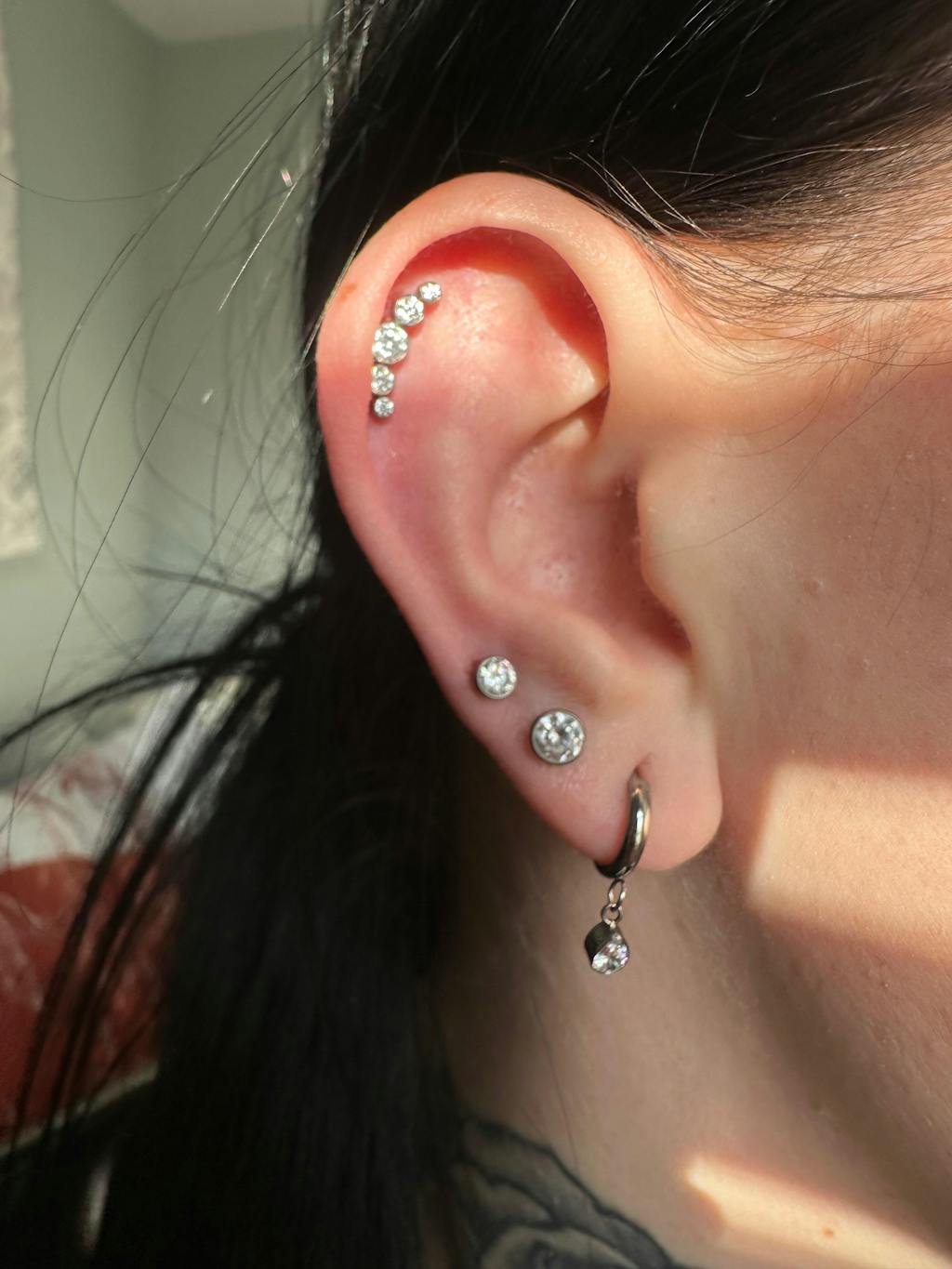 Implant Grade Titanium Threadless Push In Cartilage 5 Gem Curved White CZ Gems With Flat Back