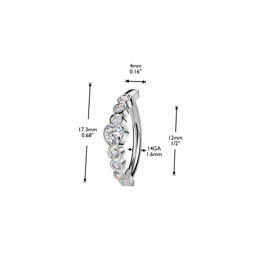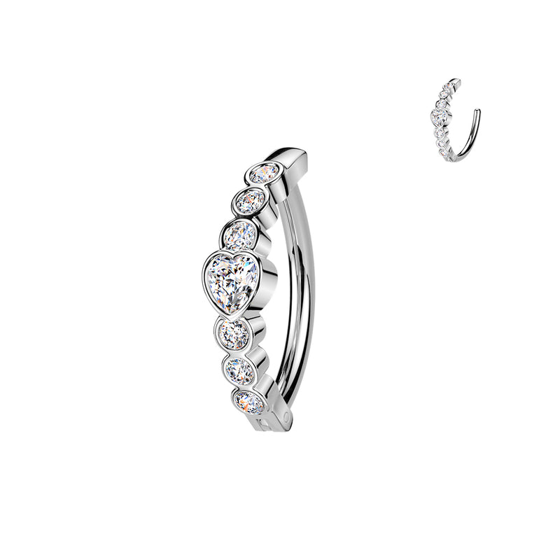 316L Surgical Steel White CZ Bezel Heart Hinged Clicker Belly Ring