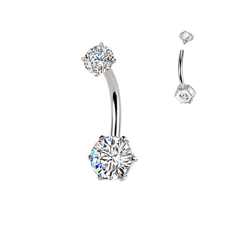 316L Surgical Steel White CZ Internally Threaded 6 Prong Classic Circle Belly Ring