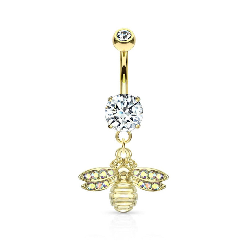 Cute Small CZ Dangle Bumble Bee Gold PVD Surgical Steel Belly Ring - Pierced Universe