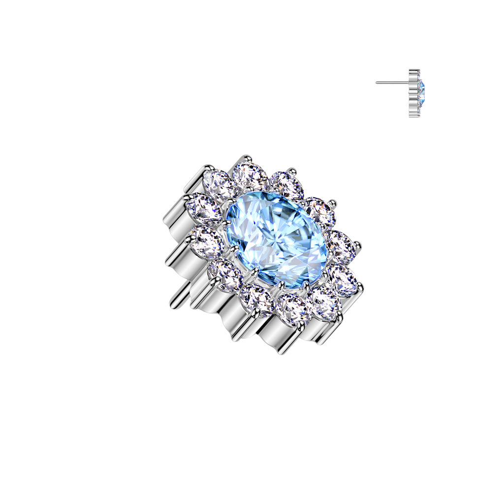 Implant Grade Titanium Aqua CZ Large Sunflower Threadless Labret With Flat Back
