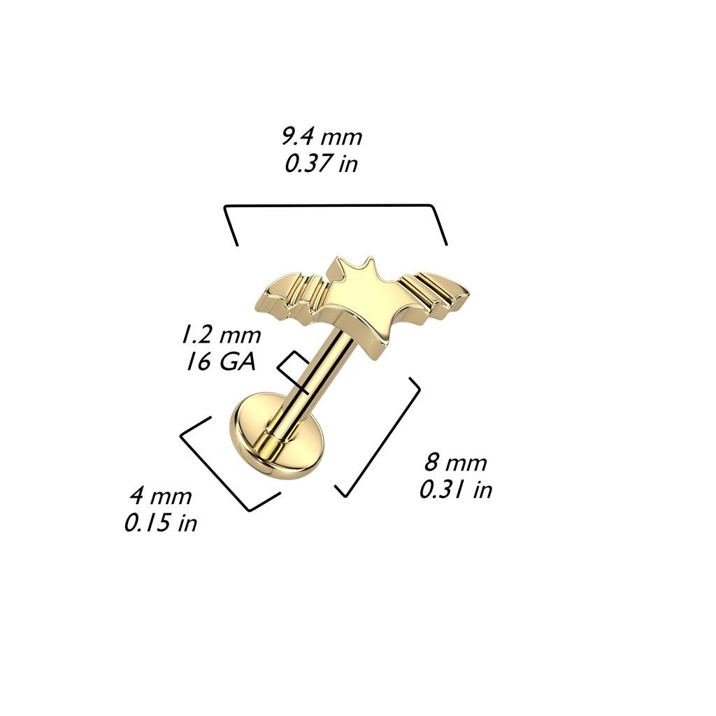 Implant Grade Titanium Gold PVD Internally Threaded Large Ridged Bat Flat Back Labret