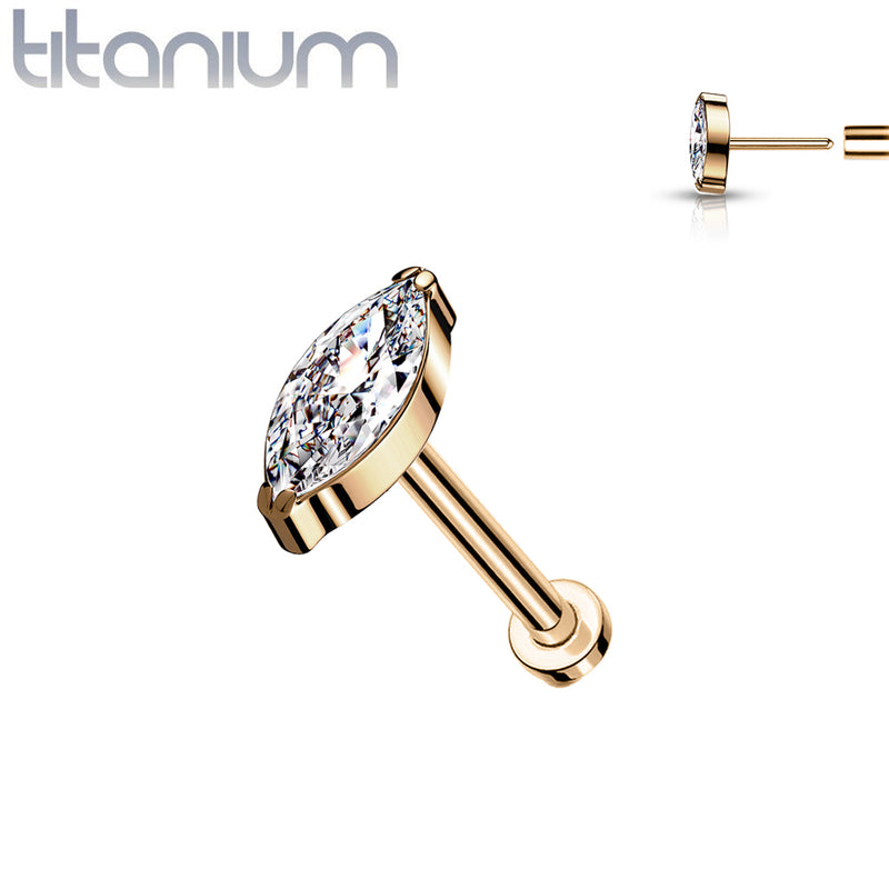 Implant Grade Titanium Rose Gold PVD Threadless Push In Labret White Marquise CZ Stud