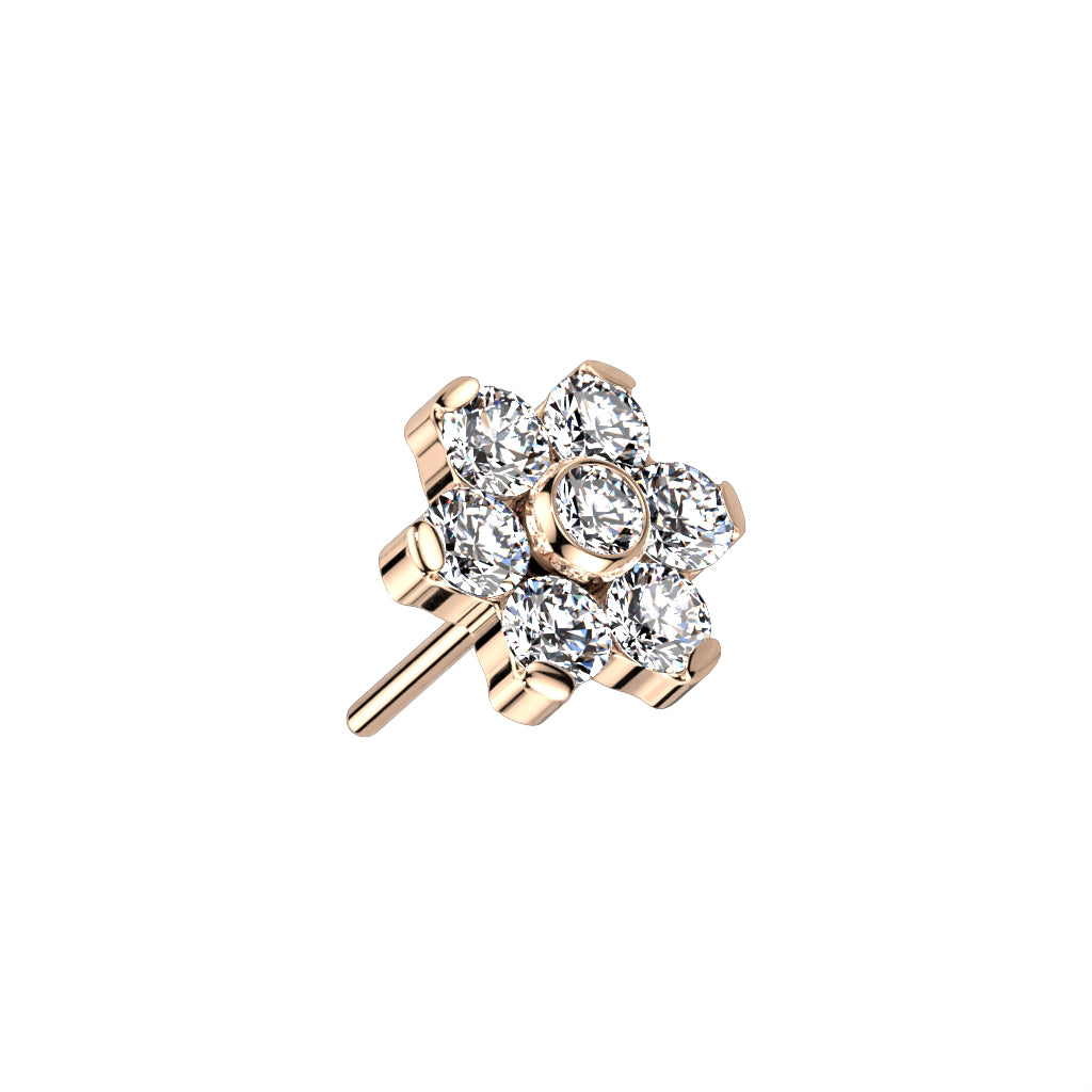Implant Grade Titanium Threadless Rose Gold PVD Push In Nose Ring White CZ Flower With Flat Back