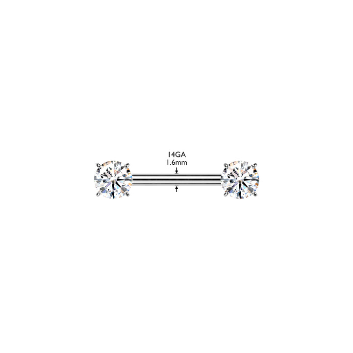 Implant Grade Titanium White CZ Internally Threaded Straight Barbell Nipple Ring