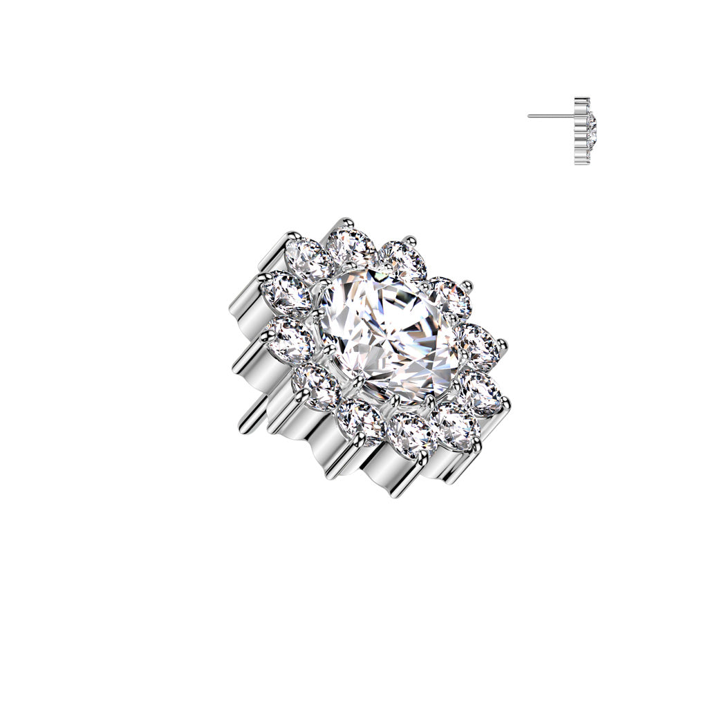 Implant Grade Titanium White CZ Large Sunflower Threadless Labret With Flat Back