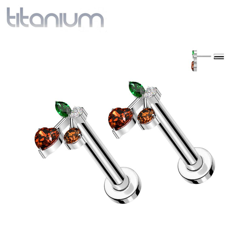 Implant Grade Titanium Red CZ Heart Cherry Cute Push In Threadless Labret With Flat Back - Pierced Universe