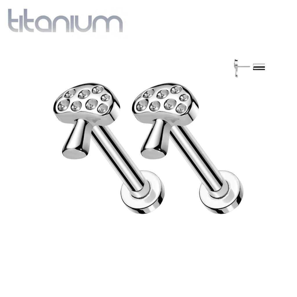 Pair of Implant Grade Titanium Threadless Mushroom Push In Earrings With Flat Back