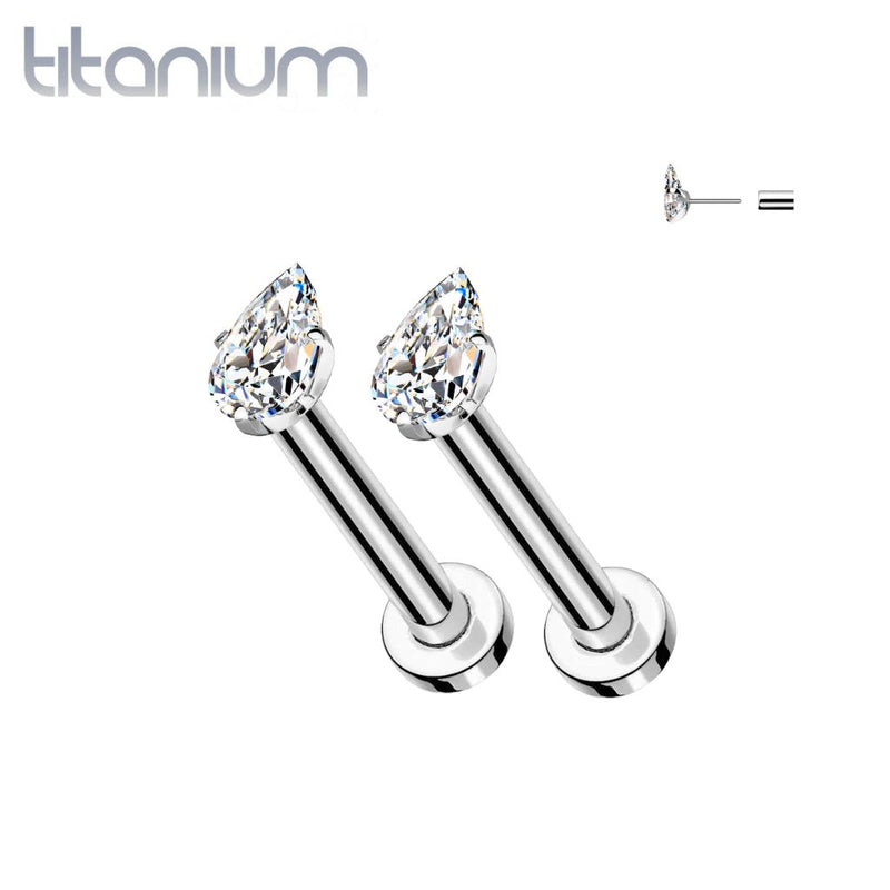 Implant Grade Titanium White CZ Teardrop Gem Threadless Labret With Flat Back - Pierced Universe