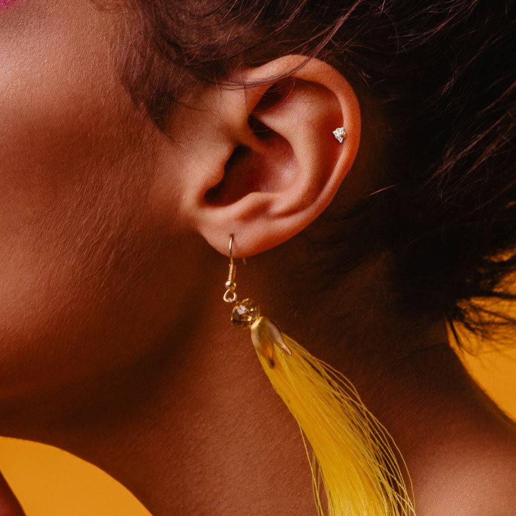 Rose Gold Plated Surgical Steel Ball Back Prong White Triangle CZ Cartilage Ring Stud - Pierced Universe