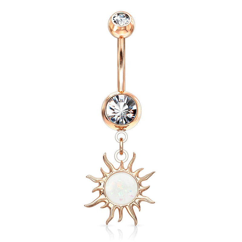 Rose Gold Plated Surgical Steel White Glitter Opal Tribal Sun Belly Button Ring